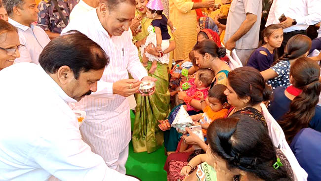 जिला कार्यक्रम अधिकारी पूनम तिवारी ने जानकारी देते हुए बताया कि राष्ट्रीय पोषण अभियान के तहत आज कलेक्ट्रेट परिसर में सांसद डॉक्टर महेश शर्मा, जिला पंचायत अध्यक्ष अमित चौधरी, विधायक जेवर धीरेंद्र सिंह, विधायक दादरी तेजपाल नागर, जिलाधिकारी मनीष कुमार वर्मा एवं मुख्य विकास अधिकारी जनार्दन सिंह के द्वारा आंगनबाड़ी केंद्र सूरजपुर व मलकपुर के 11 बच्चों का अन्नप्राशन कराया गया। राष्ट्रीय पोषण अभियान के तहत आज सामुदायिक आधारित गतिविधियों के अंतर्गत जनपद में 1100 बच्चों का अन्नप्राशन किया गया। पोषण शपथ पर सभी जनप्रतिनिधियों द्वारा हस्ताक्षर भी किए एवं दैनिक जीवन में श्री अन्न की उपभोक्ता बढ़ाने के उद्देश्य से कार्यक्रम में श्री अन्न से बने व्यंजनों की प्रदर्शनी भी लगाई गई, जिसका सभी जनप्रतिनिधियों ने अवलोकन भी किया।