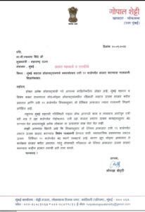 सांसद गोपाल शेट्टी को कई सोसायटियों के निवासियों के संघों से पत्र प्राप्त हुए हैं और उन्होंने उन्हें अपने निवेदन के साथ संलग्न भी किया है। इसके अलावा, सां.गोपाल शेट्टी ने मंत्रीद्वय को लिखे अपने पत्र में उल्लेख किया है कि,