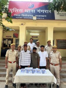 चित्तौड़गढ़ शहर के प्रताप नगर स्थित श्याम ज्वैलर्स के यहां 13 जून को हुई चोरी की वारदात का खुलासा करते हुए सदर थाना पुलिस व साइबर सेल ने बारां जिले के हिस्ट्रीशीटर फरमान अली उर्फ ओड़ा पुत्र फिरोज अली व उसके साथी साबिर हुसैन पुत्र सीजर अली निवासी छबड़ा को गिरफ्तार कर चोरी के जेवरात व वारदात में प्रयुक्त बाइक जब्त की है। वारदात का मुख्य आरोपी फरमान महाराष्ट्र, मध्यप्रदेश व यूपी राज्यों में 32 मामलों में वांछित है। एसपी सुधीर जोशी ने बताया कि शहर के प्रताप नगर इलाके में स्थित श्याम ज्वैलर्स के यहां 13 जून को हुई चोरी का खुलासा करने के लिए अतिरिक्त पुलिस अधीक्षक सरिता सिंह व सीओ विनय कुमार के सुपरविजन में थानाधिकारी गजेंद्र सिंह व साइबर सेल की संयुक्त टीम गठित की गई। टीम ने घटना स्थल का मौका मुआयना कर तकनीकी डाटा व तकनीकी साक्ष्य जुटाए तथा वारदात के आसपास के क्षेत्र से लेकर पूरे रूट पर लगे सभी सीसीटीवी कैमरों की रिकॉर्डिंग प्राप्त कर उसका विश्लेषण करने के बाद आरोपियों को नामजद किया। आरोपियों के बारे में जानकारी मिलने के बाद उनके संदिग्ध ठिकानों पर दबिश दी गई। बारा जिले के छबड़ा थाने पहुंचकर स्थानीय पुलिस को साथ लेकर उनके घर पर छापेमारी की गई और दोनों आरोपियों फरमान अली उर्फ ओदा और साबिर हुसैन को गिरफ्तार कर चोरी का माल बरामद कर लिया गया।