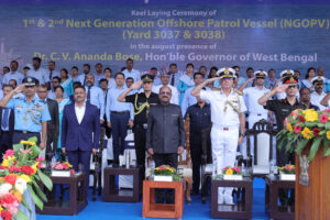 खुले समुद्र में गश्त करने वाले आधुनिक पीढ़ी के पहले और दूसरे जहाज (एनजीओपीवी) (पूर्व-जीआरएसई) यार्ड 3037 तथा 3038 के निर्माण कार्यक्रम का शुभारंभ समारोह 05 नवंबर, 2024 को कोलकाता के मेसर्स गार्डन रीच शिपबिल्डर्स एंड इंजीनियर्स लिमिटेड में आयोजित किया गया। इस समारोह की अध्यक्षता पश्चिम बंगाल के माननीय राज्यपाल डॉ. सी.वी. आनंद बोस ने की, जिसमें भारतीय नौसेना और मेसर्स जीआरएसई के वरिष्ठ अधिकारी उपस्थित थे। 11 एनजीओपीवी जहाजों के स्वदेशी डिजाइन और निर्माण के उद्देश्य से रक्षा मंत्रालय तथा मेसर्स जीएसएल, गोवा के बीच सात जहाजों के लिए व मेसर्स जीआरएसई, कोलकाता के साथ 4 पोतों के अनुबंध किये गए थे।