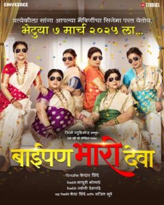 जियो स्टूडियोज द्वारा प्रस्तुत, माधुरी भोसले, ज्योति देशपांडे द्वारा निर्मित, बेला शिंदे और अजीत भूरे द्वारा सह-निर्मित, ‘बैपन भारी देवा’ में रोहिणी हट्टंगड़ी, वंदना गुप्ते, सुचित्रा बांदेकर, शिल्पा नवलकर, दीपा परब चौधरी और सुकन्या कुलकर्णी मोने सहित कई शानदार कलाकार हैं। फिल्म का मनमोहक संगीत साई-पीयूष द्वारा रचित है, और वैशाली नाइक द्वारा लिखा गया है।